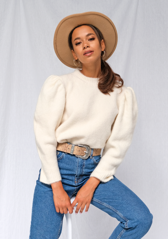 Kremowy sweter z bufkami A63 ILM