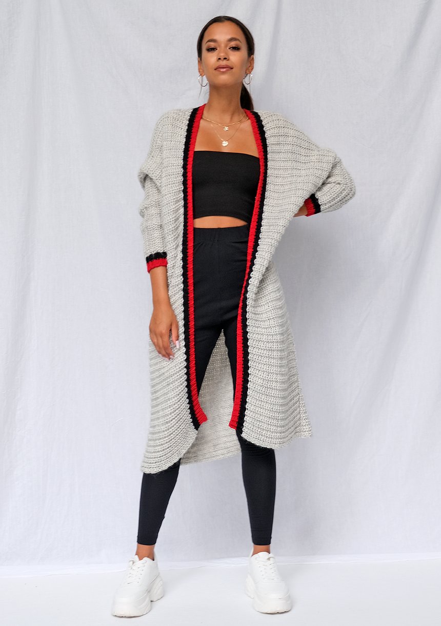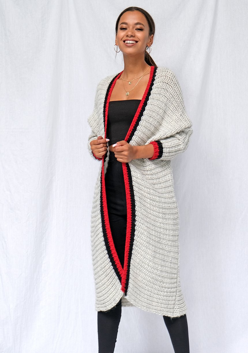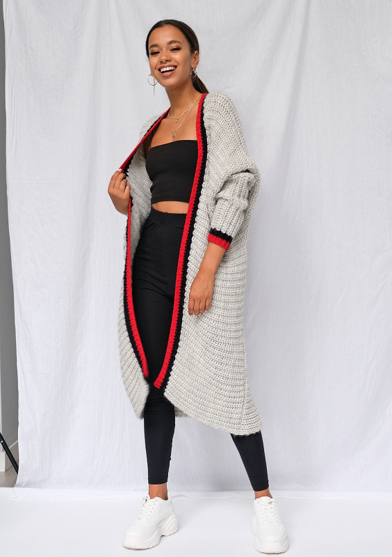 Knotty - Kardigan z wiązaniami i szerokim rękawem Brązowy