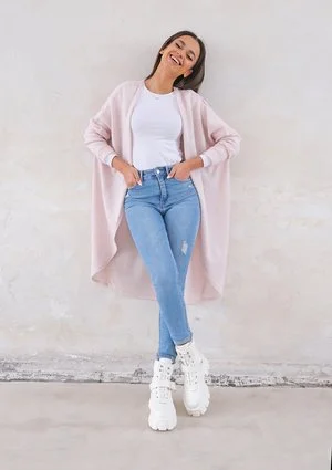 Na nadchodzącą ciepłą porę warto mieć w zanadrzu lekkie i zwiewne okrycia, które wystarczy na siebie narzucić przed wyjściem, a żaden wieczorny spacer nie okaże się zbyt chłodny, by cieszyć się długim dniem. Pudrowa, lekka narzutka to bardzo eteryczne ubranie, które nie raz na siebie z przyjemnością założysz. To zwiewne, długie okrycie ma uniwersalny styl – możesz łączyć je z każdą, najzwyklejszą stylizacją oraz nosić do sukienek. Pudrowy odcień różu rozjaśni Twój wygląd i doda młodzieńczej aury. Narzutka stanowi świetny pomysł na wakacyjne wyjazdy spotkania ze znajomymi, podczas których nie raz zaskoczy nas chłodne popołudnie. Długi fason przypadnie do gustu miłośniczkom niesztampowych rozwiązań, a gładki owal cięcia dołu sprawia, iż ubranie prezentuje się dość elegancko i estetycznie.
