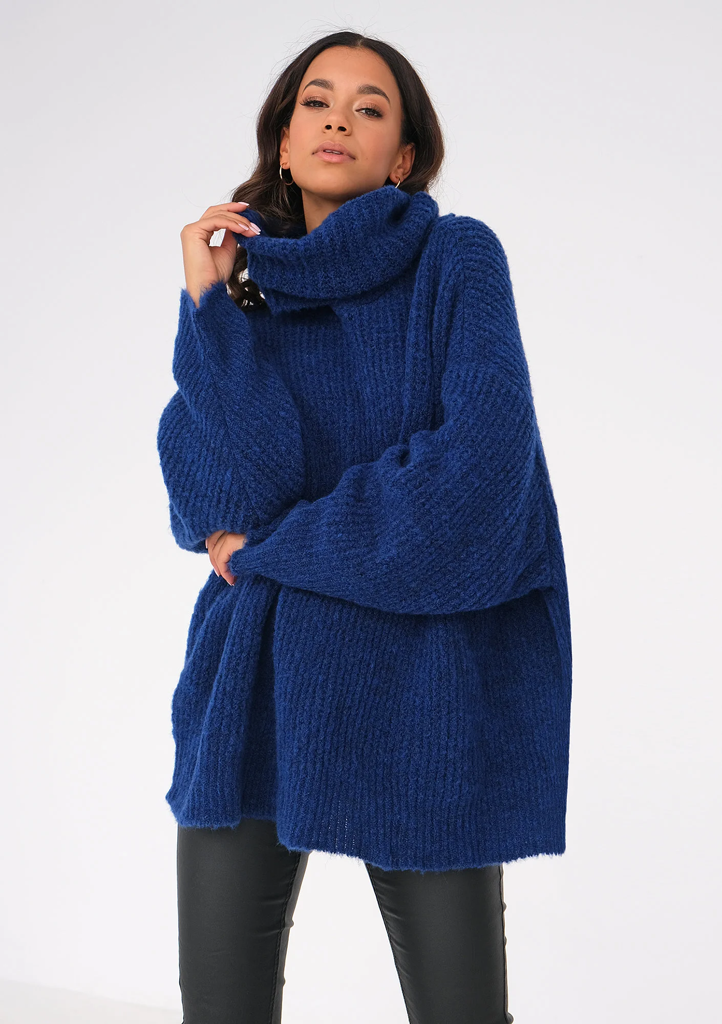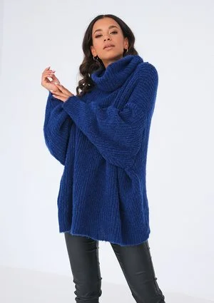 Nie można przejść obok niego obojętnie. Kobalt to wyrazista, ale i szlachetna barwa. Rzuca się w oczy, ale przecież właśnie o to chodzi, by tchnąć trochę życia w coraz bardziej szare ulice i jednocześnie dodać Ci energii i pewności siebie. Jest naprawdę ciepły i miły w dotyku, a zawdzięcza to przemyślanemu składowi. Wełna grzeje, a akryl sprawia, że dzianina się nie rozciąga i jest łatwa w pielęgnacji. Ten sweter chroni przed zimnem, okrywa szyję, a do tego jest wygodny i naprawdę stylowy. Uszyto go w Polsce, co oznacza zrównoważoną modę, wysoką jakość i pozytywnie wpływa na ślad węglowy produktu. Występuje w uniwersalnym rozmiarze i wspaniale otuli każdą sylwetkę, skutecznie kamuflując ewentualne niedoskonałości.