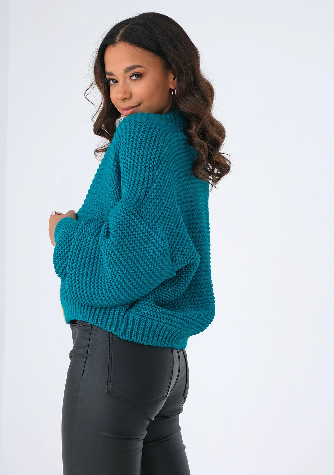 Zgłoś nielegalną treśćCudownie miękki i przyjemnie otulający, zielony krótki kardigan zapewni Ci ciepło i wygodę w chłodniejsze dni. Nietuzinkowy, krótki fason pozwala podkreślić walory sylwetki i jednocześnie ochronić ramiona przed zimnem. Duże, luźne rękawy zakończone wygodnymi ściągaczami osłonią ręce przed wiatrem w późnoletnie i jesienne wieczory. Tak jak inne akrylowe swetry damskie, również ten model wyróżnia się niezwykłą lekkością, dlatego stanowi idealne uzupełnienie każdej stylizacji. Doskonale sprawdza się zarówno w roli samodzielnego okrycia, jak i noszony pod kurtką czy płaszczem. Ten uszyty w polskiej szwalni kardigan damski cechuje wysoka jakość wykonania i wygoda noszenia.
