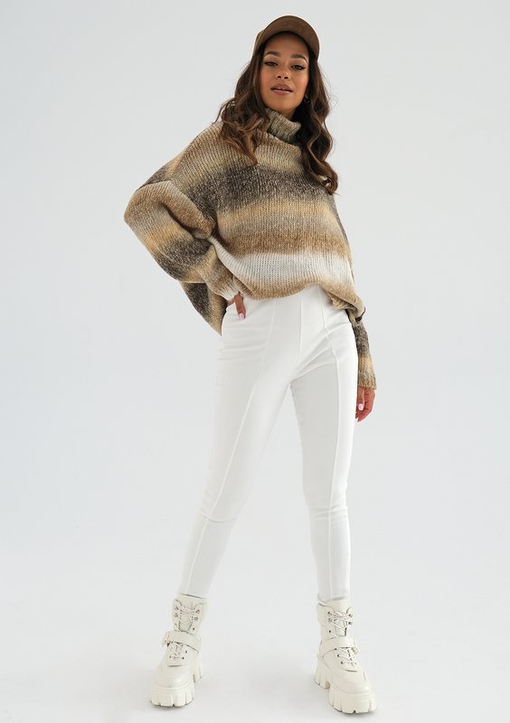 Lofty Long – Długi sweter oversize o grubym splocie z warkoczem Latte