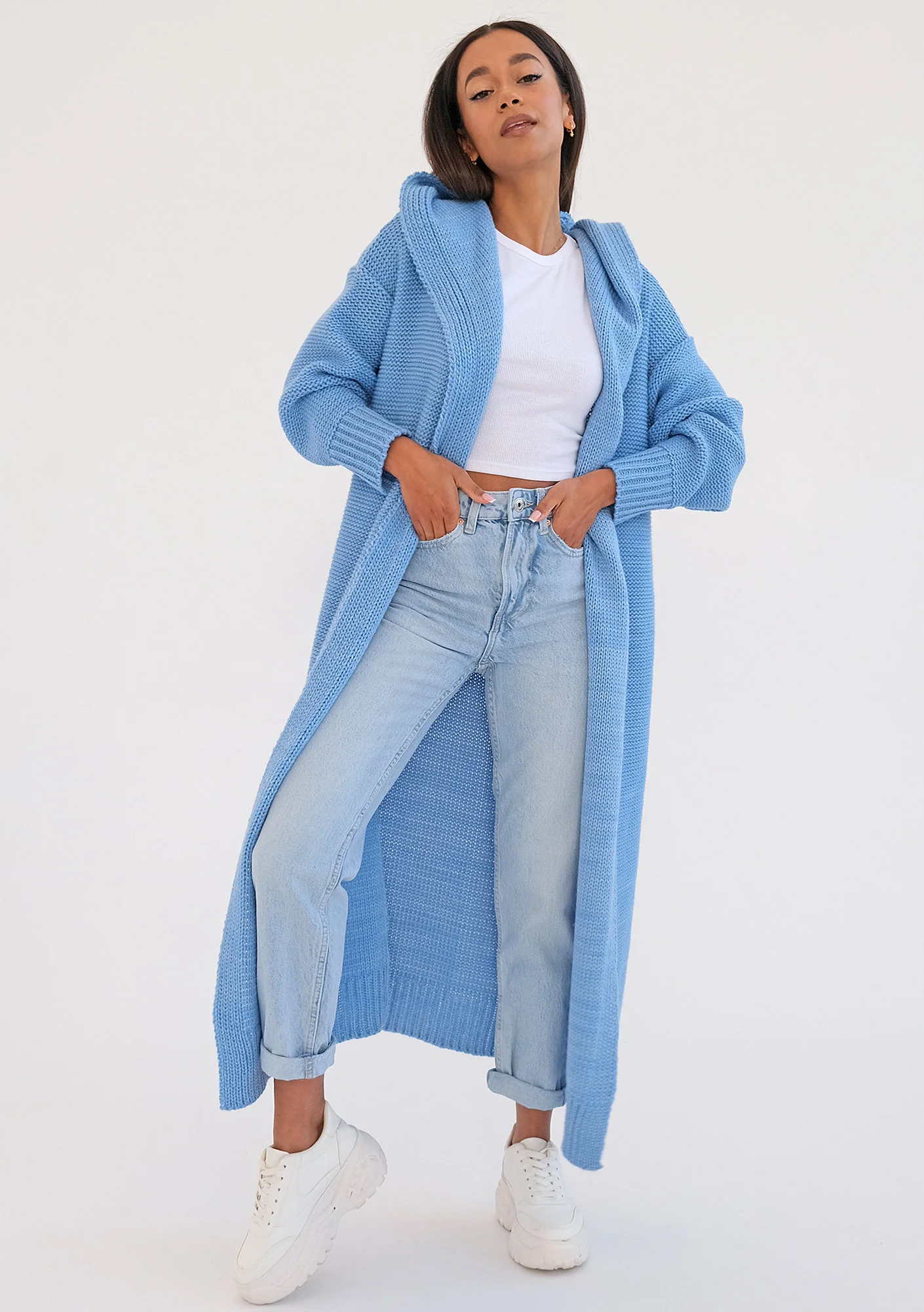 Błękitny kardigan z kapturem skutecznie ochroni Cię przed wiatrem i chłodem, okrywając niemal całą sylwetkę. Malme to luźny fason, który wysokim paniom będzie sięgał za kolano. Dzianina, z której jest wykonany to splot różnych włókien, w tym naturalnej, świetnie zachowującej ciepło wełny. Model jest dostępny w czterech rozmiarach: XS, S, M i L. Kolekcja na wiosnę i lato 2022 obejmuje także inne kolory kardiganu: morski, jasnozielony i malinowy. Swetry damskie jak wszystkie produkty marki powstają w naszej szwalni w Tomaszowie Mazowieckim. Kupując masz zatem pewność dobrej jakości, bezpieczeństwa zakupów i godnego zaufania pochodzenia produktu.