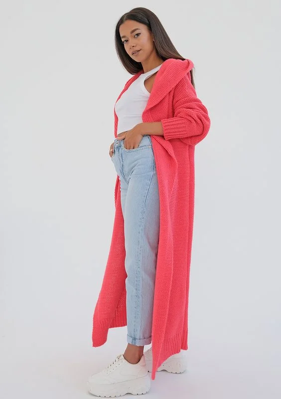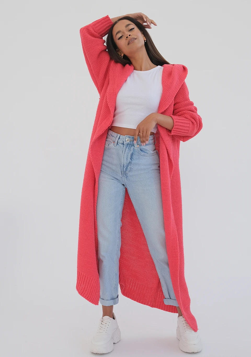 luźny, długi kardigan z kapturem będzie mocnym akcentem wiosennych i letnich stylizacji. To wygodny, ciepło otulający model maxi z miękkiej dzianiny z dodatkiem wełny.