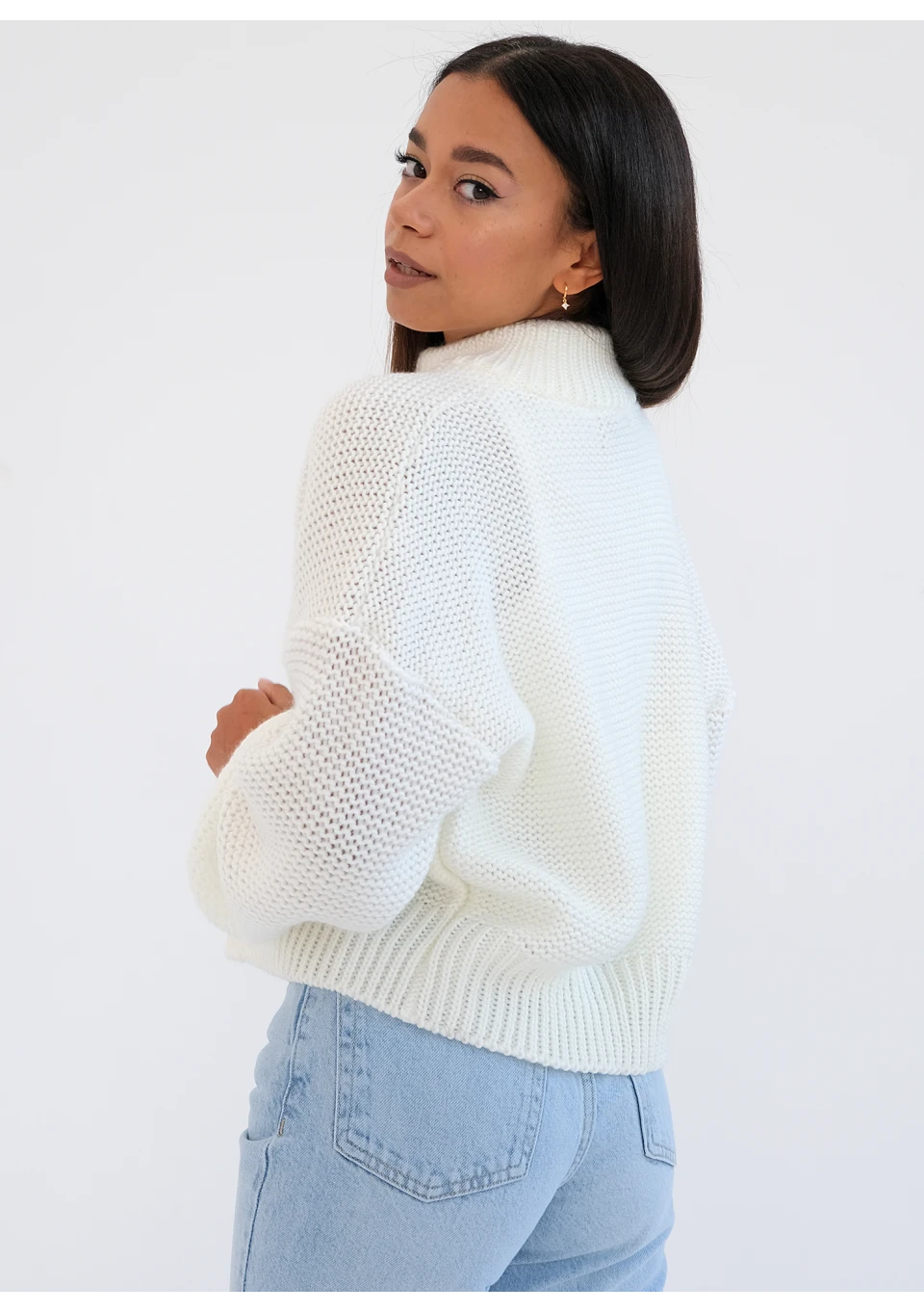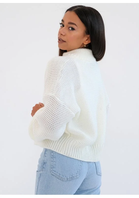 Stor - Sweter z golfem oversize Kremowy