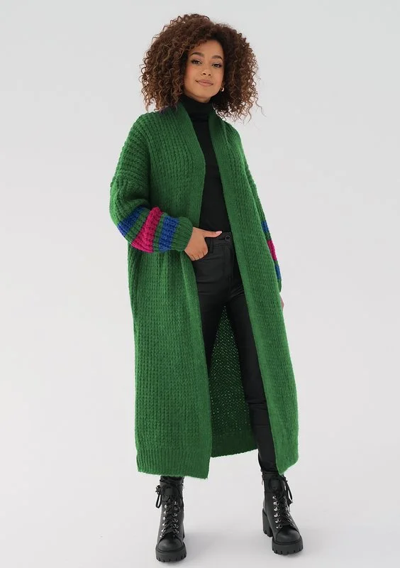 Vind - Długi kardigan Stripes Zielony