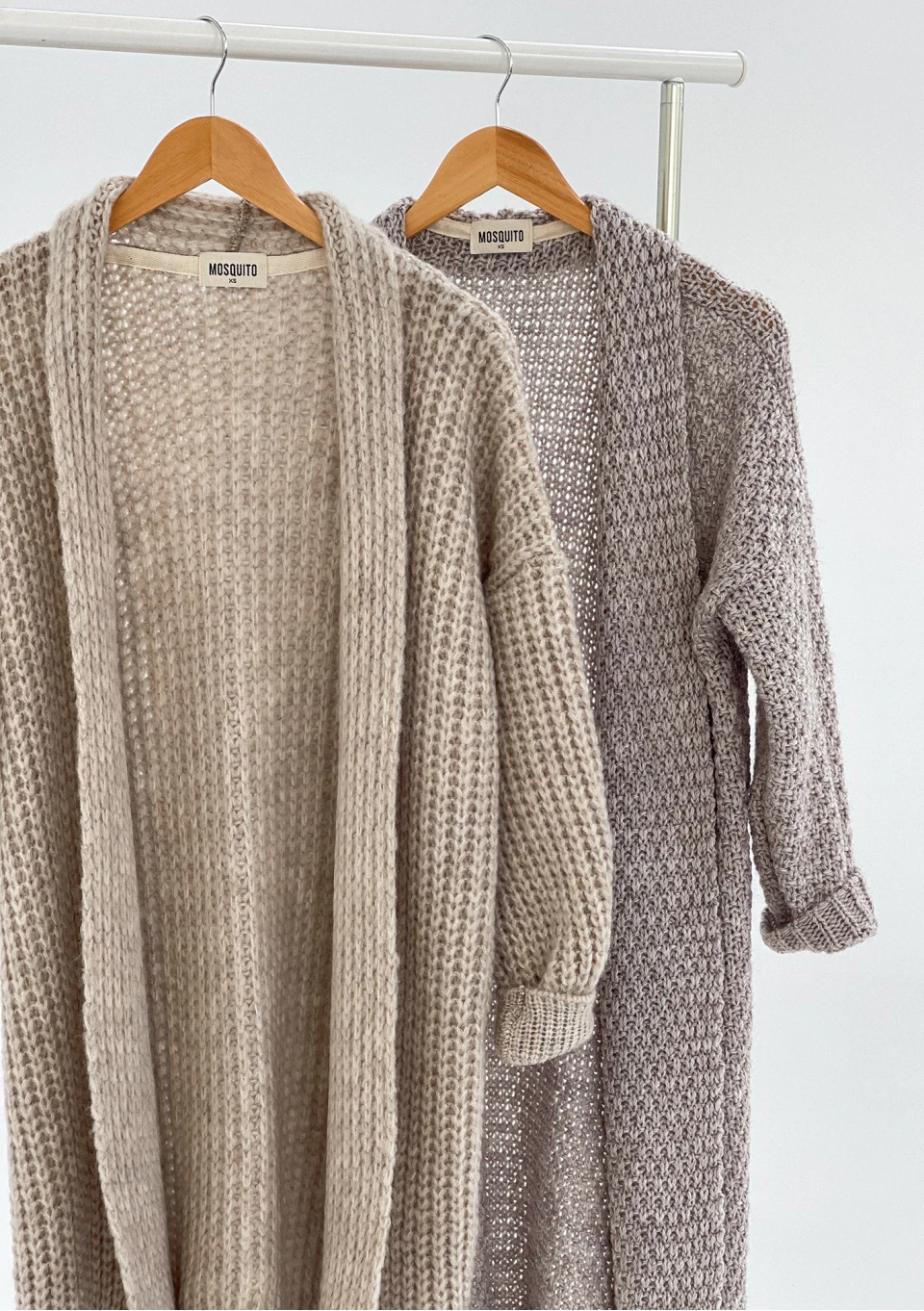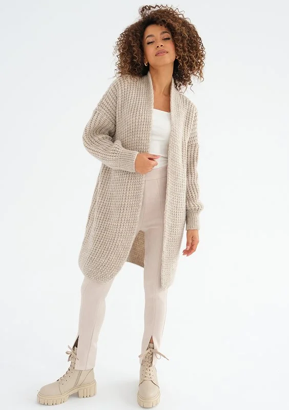 Lofty Long – Długi sweter oversize o grubym splocie z warkoczem Latte