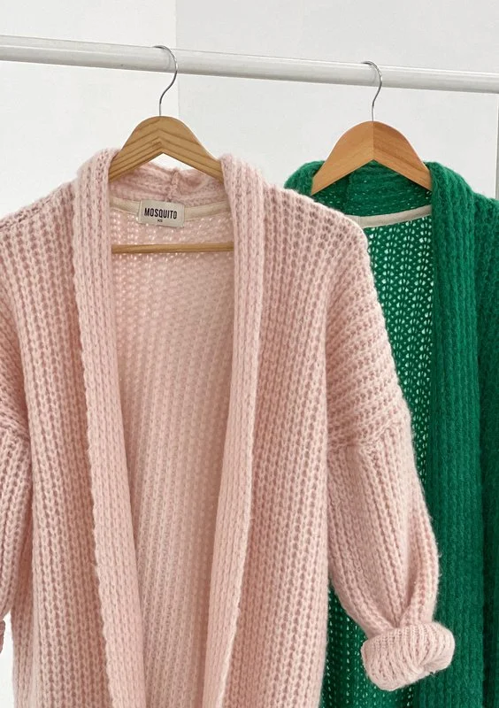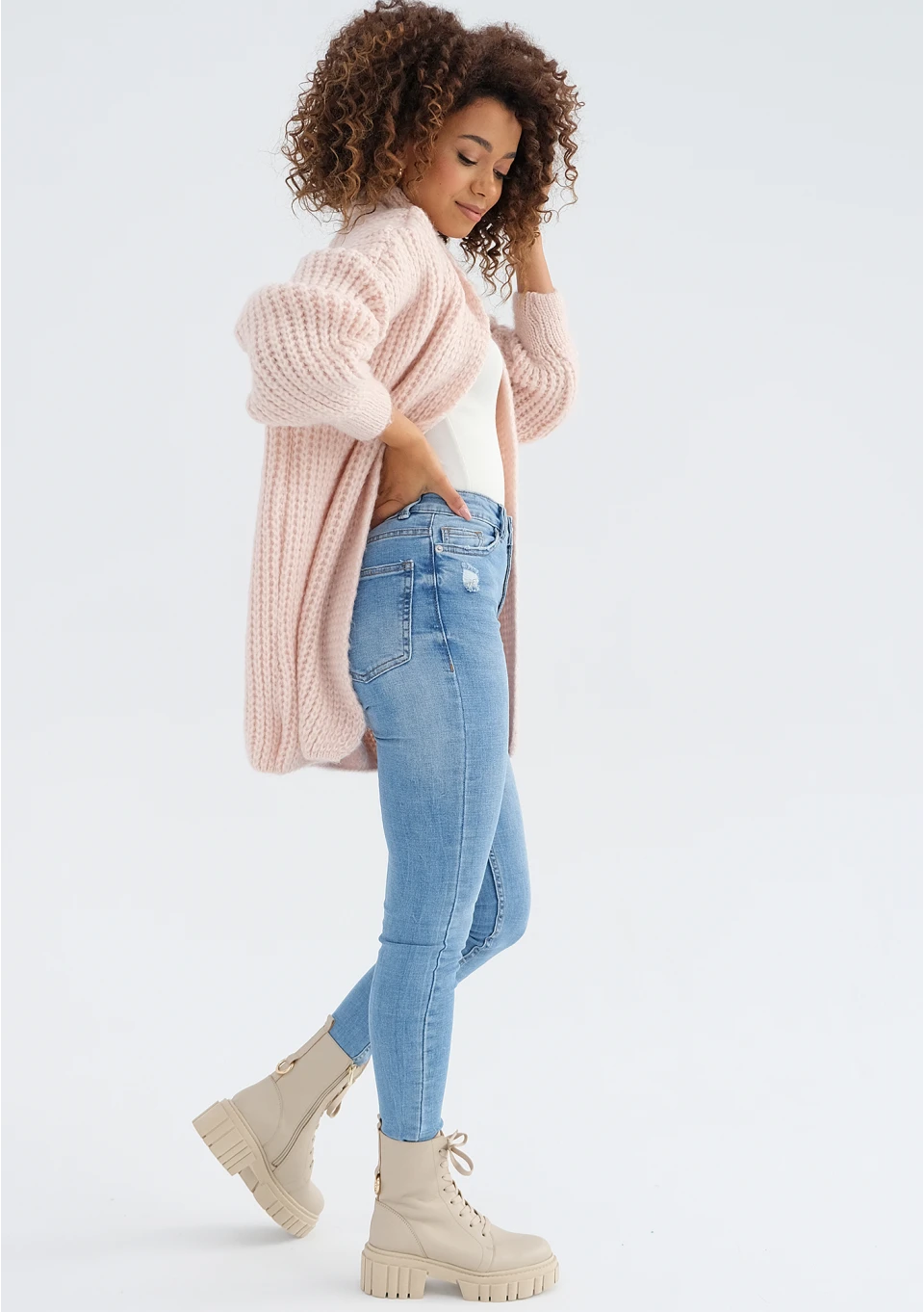 Marin - Dzianinowy kardigan maxi w pasy Błękitny