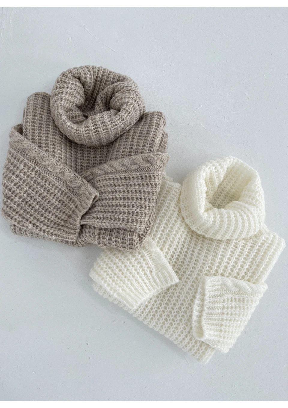 Cechy ozdobne sploty kłosów na rękawach, golf.