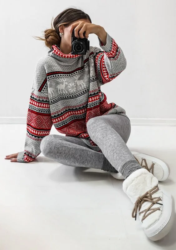 Snowee - Bluza swetrowa w zimowy wzór Czerwona
