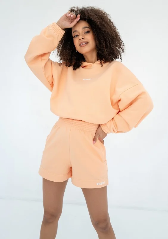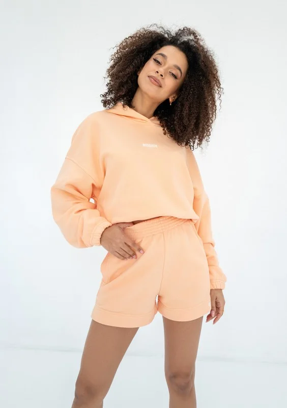 Wygodne szorty dresowe w promiennym odcieniu Peach Fuzz. Dzięki nim będziesz gotowa na codzienne, luźne wyjścia w ciepłe dni wiosenne i letnie.