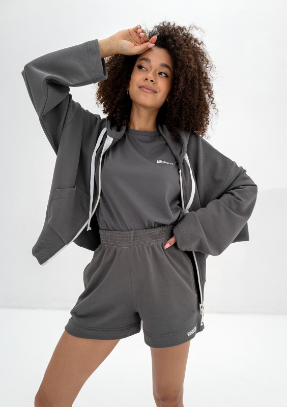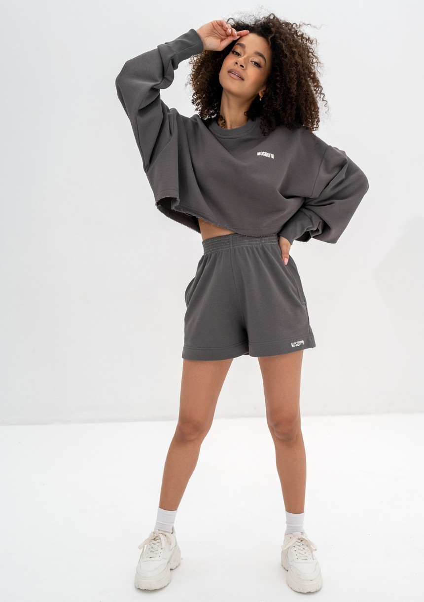 Grafitowe szorty dresowe to wszechstronny element garderoby, który łączy w sobie casualowy styl z funkcjonalnością. Ich ciemnoszary kolor łatwo współgra z innymi barwami.