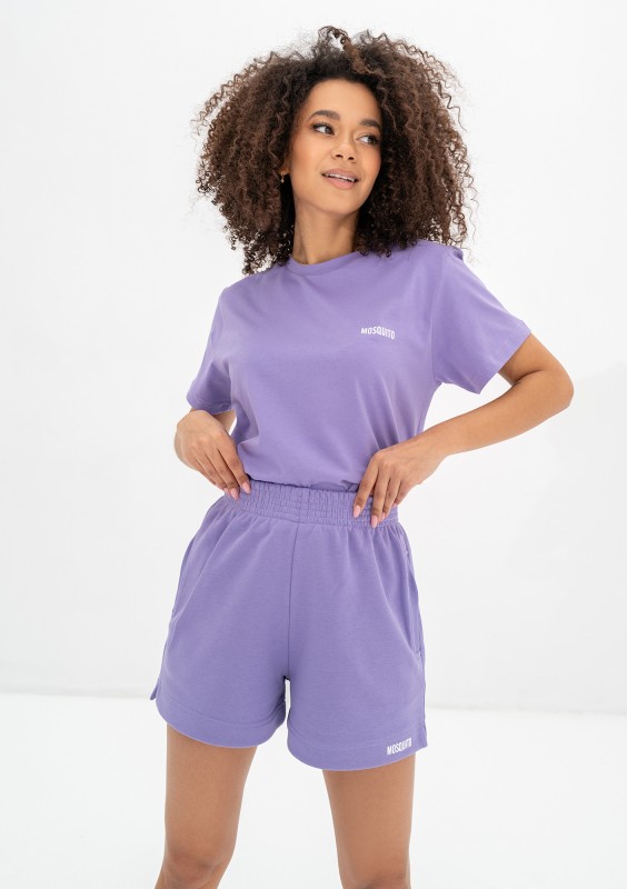 Lekkie szorty dresowe damskie w pięknym, fioletowym kolorze. Podkreślone białym logiem. Wyposażone w kieszenie.