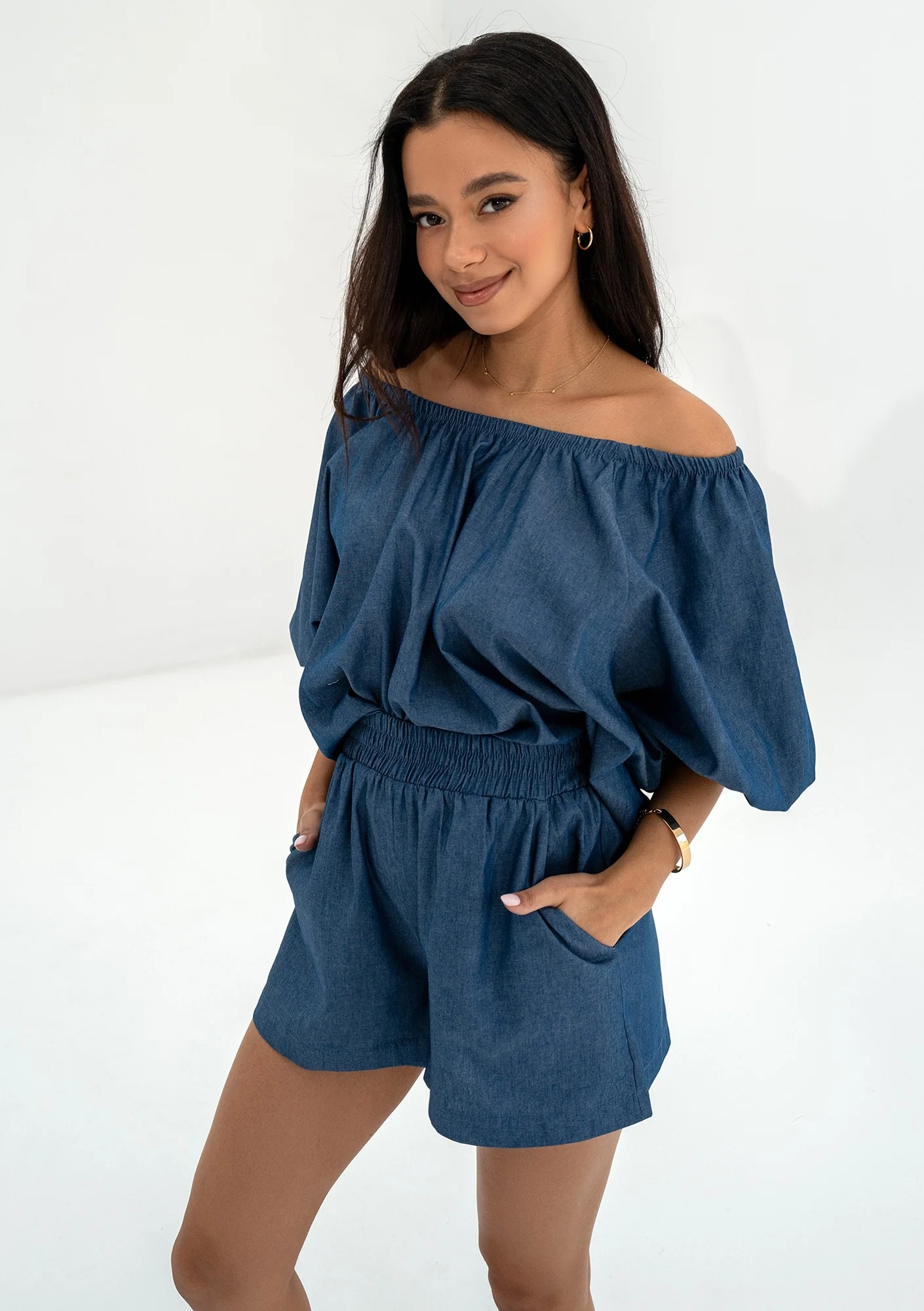 Te szorty damskie idealnie pasują do modnego, luźnego topu damskiego Boco. Wykonane są z tego samego materiału - lekkiej, zwiewnej tkaniny bawełnianej w ciemnym odcieniu jeansu. Doskonale sprawdzają się w gorące dni, zapewniając wygodę i swobodę ruchu. Ich luźny krój gwarantuje przewiewność, co czyni je odpowiednimi na letnie aktywności na zewnątrz. Zestawienie tych szortów z topem tworzy spójny, modny look, który nadaje się zarówno na plażę, jak i na spotkania z przyjaciółmi czy letnie wieczorne wyjścia. To uniwersalny komplet, który doskonale odzwierciedla letnią estetykę i zapewnia komfort przez cały dzień. Wybierz oba elementy osobno, dopasowując rozmiar do swojej sylwetki.