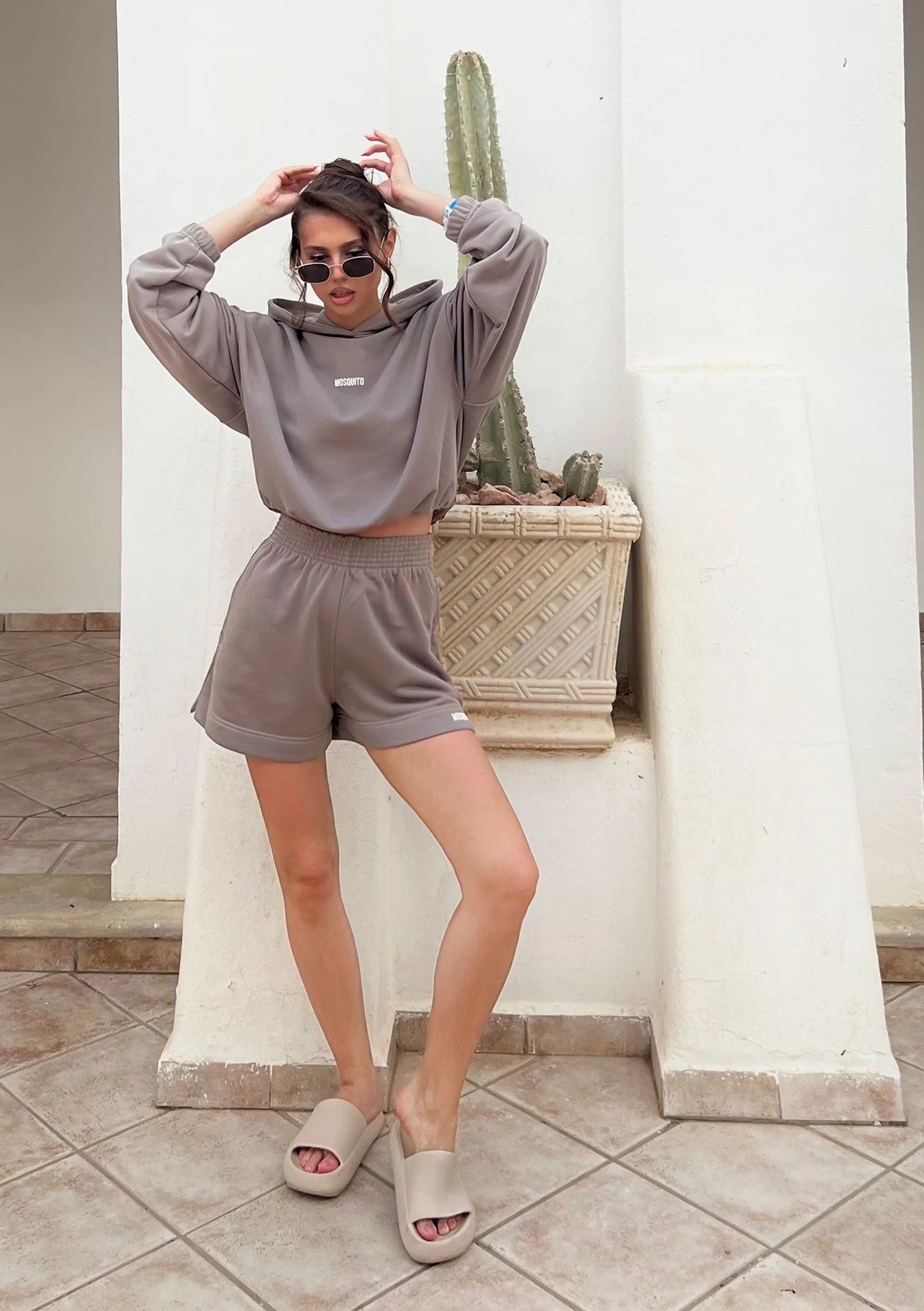 Wygodne szorty dresowe są idealne dla kobiet ceniących wszechstronność i styl. Świetnie sprawdzą się podczas weekendowych wypadów za miasto, relaksacyjnych popołudni w ogrodzie lub na wieczornych spacerach. Elegancki kolor taupe doskonale wpisze się w codzienne stylizacje w sportowym stylu.