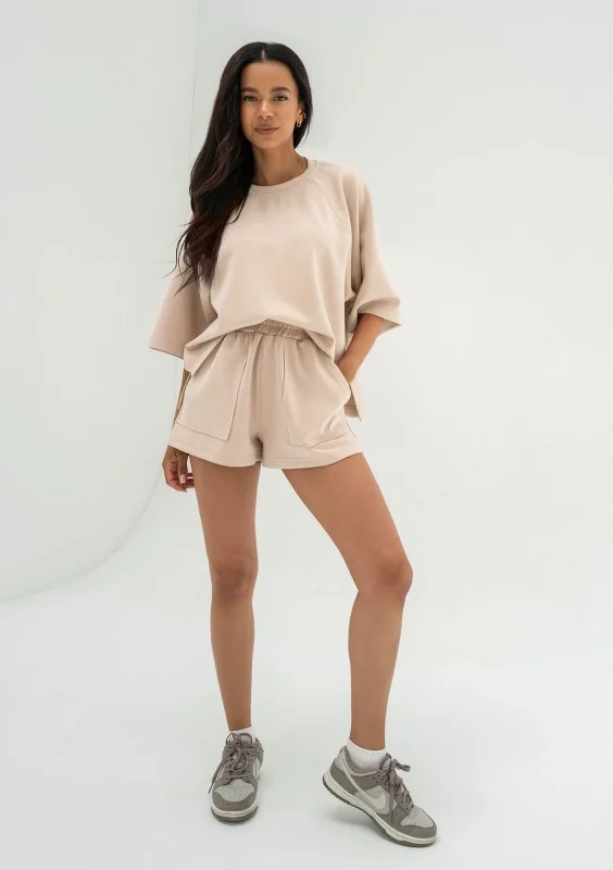 Jess - Szorty dzianinowe soft z kieszeniami Beige