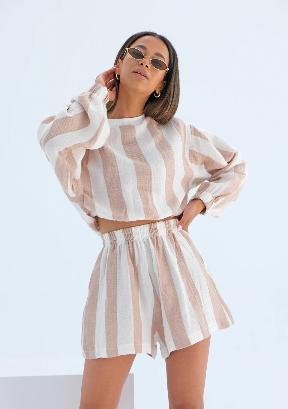 Palma - Letnie szorty z muślinu Taupe