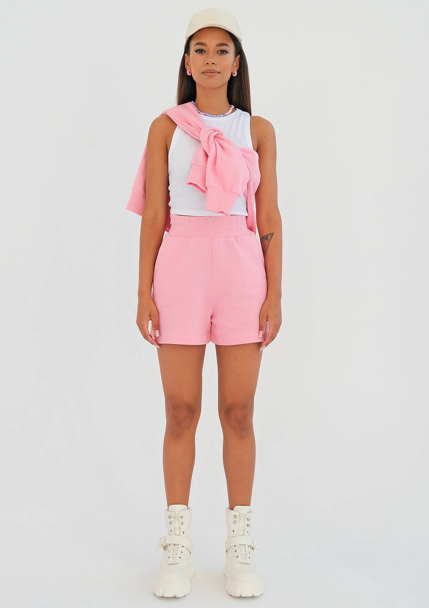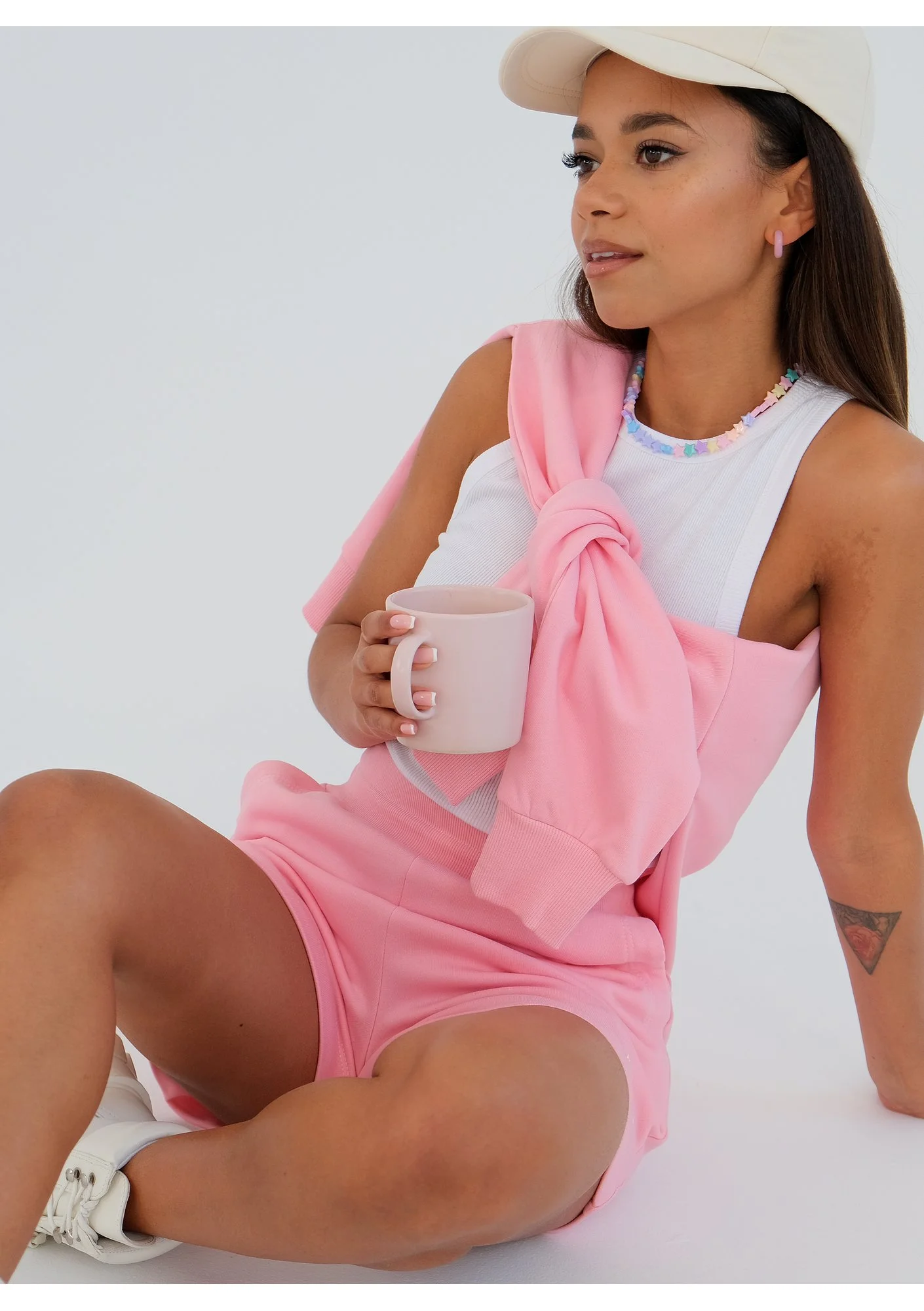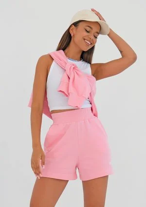 Szorty dresowe damskie w cudnym, różowym kolorze sprawią Ci przyjemną niespodziankę. To wygodny fason na niezobowiązujące okazje. Nie rezygnuj ze sportowego luzu i swobody! Wraz z nadejściem upalnego lata przydadzą Ci się zwiewne i komfortowe elementy, z których wyczarujesz różnorodne kombinacje. Różowe spodenki dresowe to model na spacery, rowerowe wycieczki, fason do szkoły, czy na zakupy. Zabierzesz je na letni wyjazd, gdzie wpiszą się w beztroską, wakacyjną atmosferę!