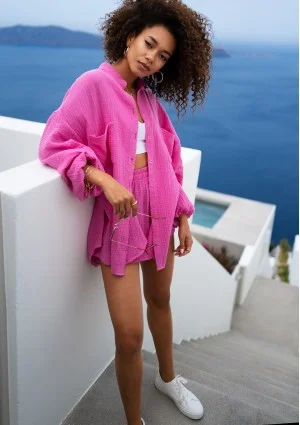 Wygodne i bardzo zwiewne spodenki muślinowe sprawdzą się w najgorętszą pogodę. Możesz zabrać je na wakacje i weekendowe wycieczki za miasto. Sprawdzą się nie tylko na plażę, lecz również podczas wielogodzinnego zwiedzania w pełnym słońcu. Szorty są bardzo wygodne, utrzymują się na elastycznej gumce. Możesz dokupić do nich dedykowaną, różową koszulę oversize i stworzyć piękny komplet bawełniany na lato. To ubranie jest w pełni eko, gdyż składa się z samej bawełny. Ponadto zostało zaprojektowane i uszyte w Polsce.