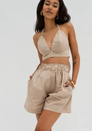 Lekkie i komfortowe szorty damskie na każdą, letnią okazję - idealnie dopełnią Twój ubiór, gdy nie będziesz wiedziała co na siebie założyć w pośpiechu. Pasują do wszystkiego, wykonane w jasnym i uniwersalnym beżu.