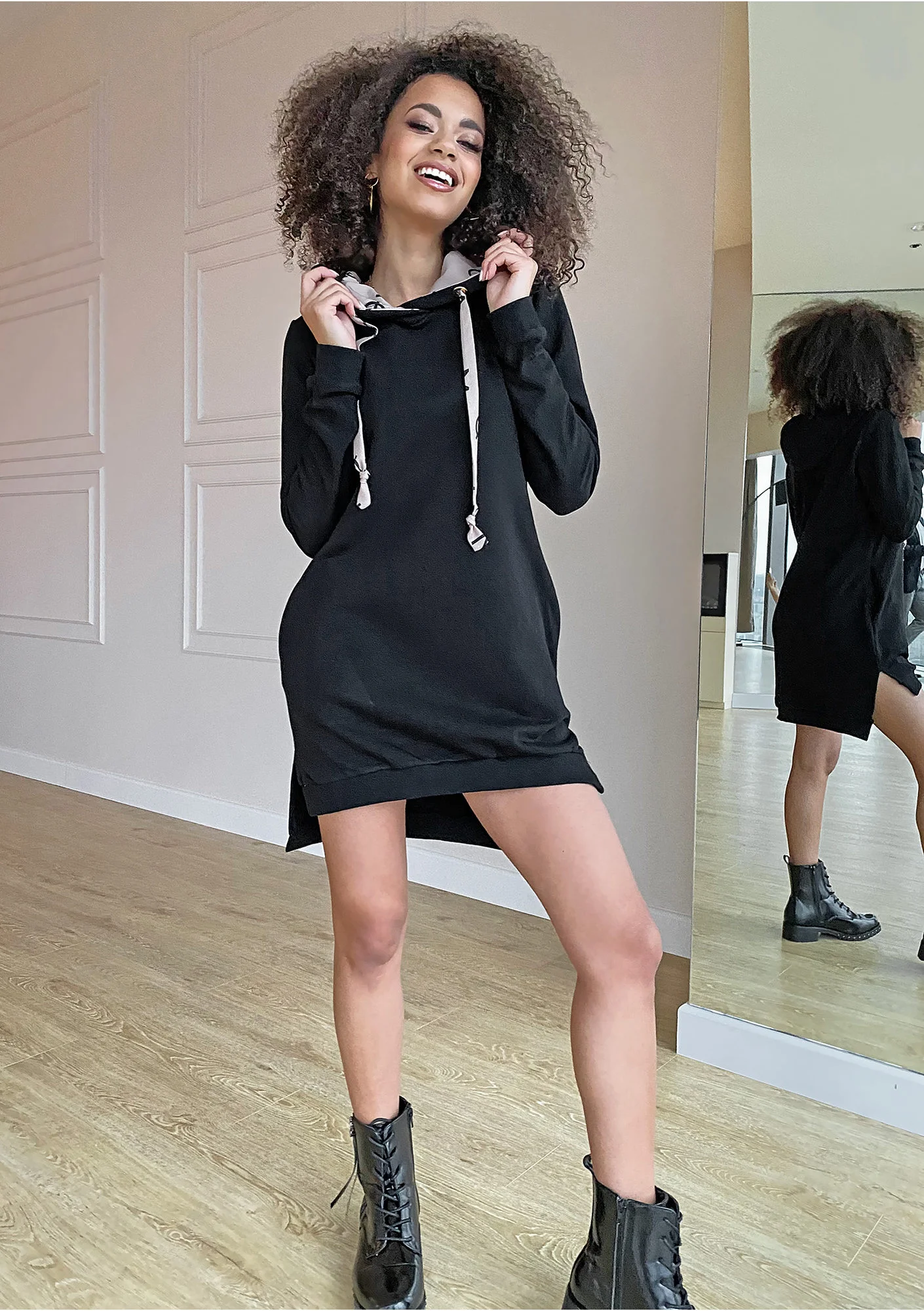Casualowy look to połączenie stylu i wygody - podobnie jak jedna z dostępnych w ofercie sklepu Mosquito bawełnianych tunik. Unikatowy model w ponadczasowym, czarnym kolorze powstał według projektu Alicji Komar i już zdobył rzesze fanek, które od codziennego stroju wymagają nie tylko stylowego wyglądu, ale przede wszystkim komfortu i funkcjonalności. Czarna tunika z kapturem została uszyta w Polsce z wysokogatunkowej bawełny - przyjemna w dotyku tkanina skutecznie chroni przed chłodem, doskonale przepuszcza powietrze i zapewnia nieograniczoną swobodę ruchów.
