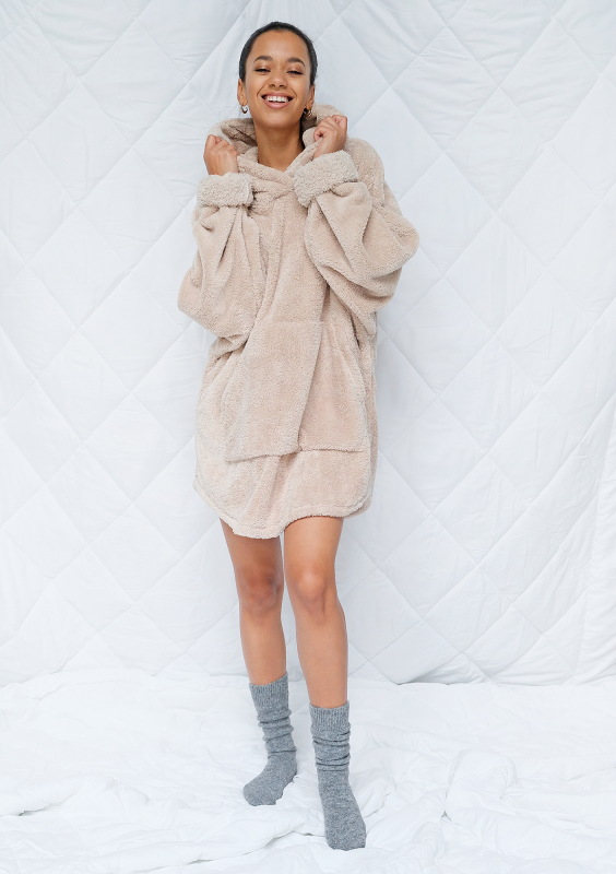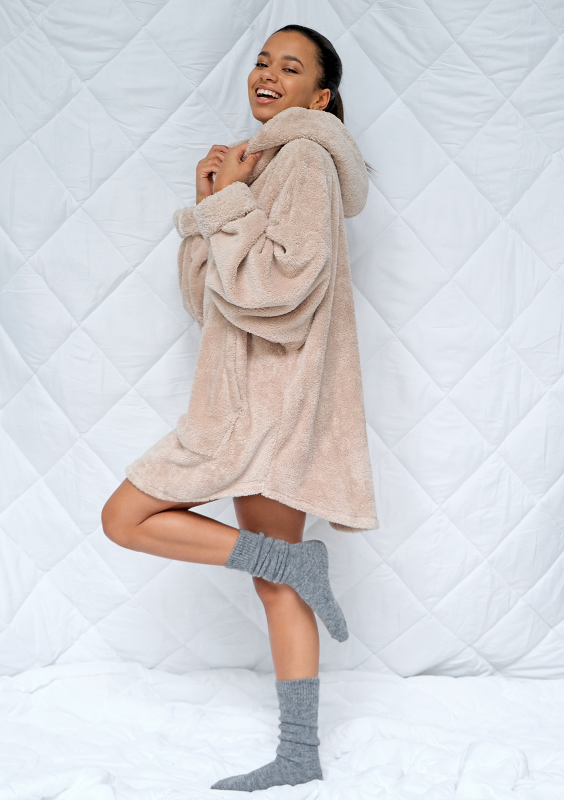 Tunika z kapturem Oversize Teddy beżowa ILM