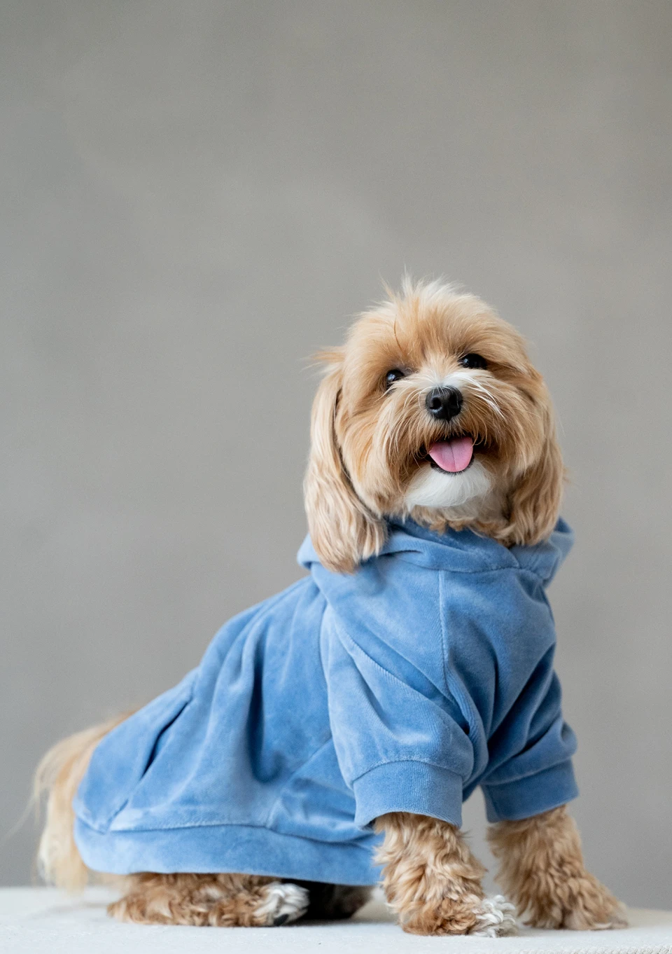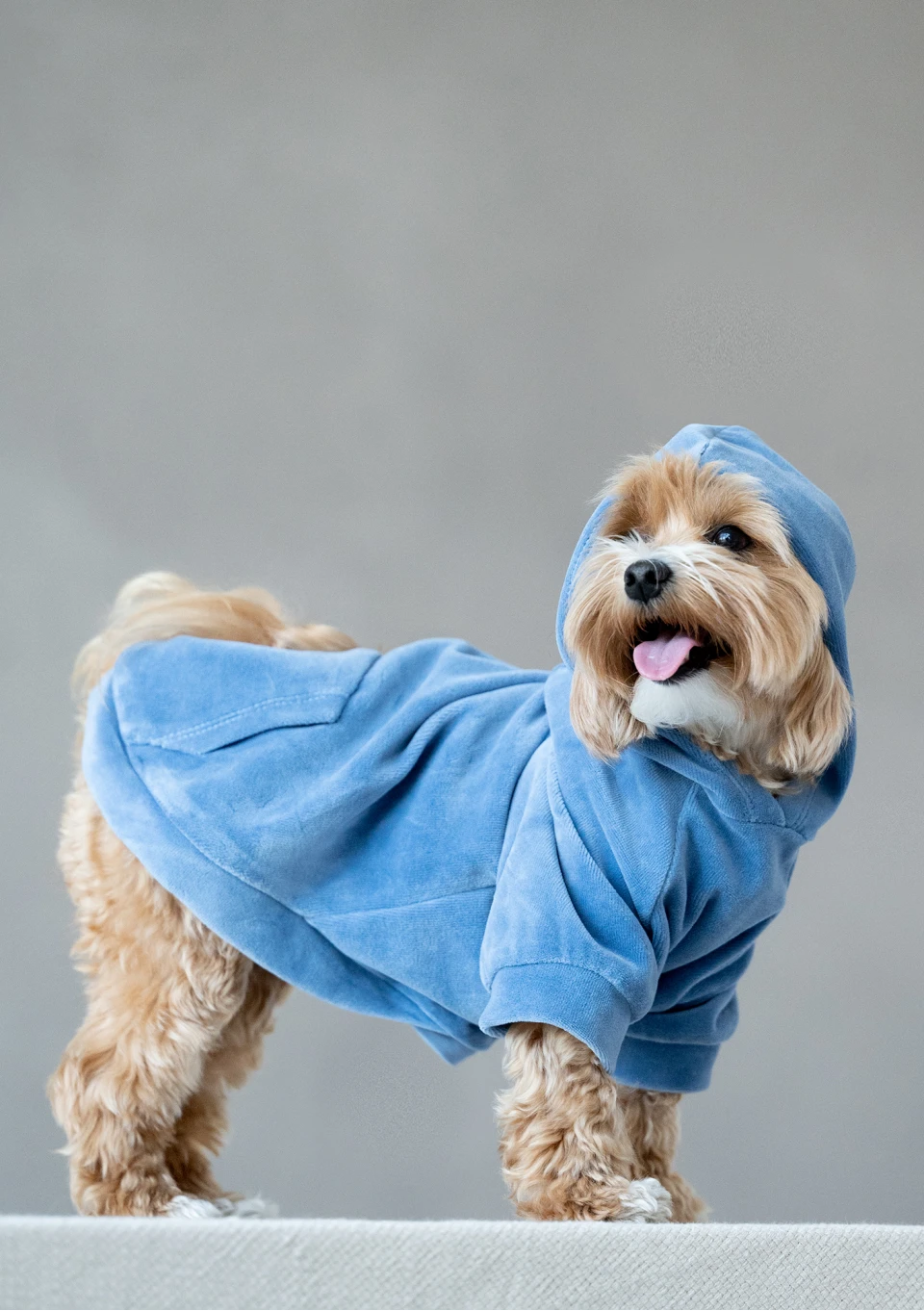 North - Welurowa bluza dla psa z kapturem Jeans Blue